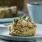 En un aro para repostería de 5 cm de diámetro, acomoda 3 hojas de pasta filo y rellena con las manzanas. Cubre con más pasta filo, arrugando con las manos para darle forma. Congela 20 minutos.